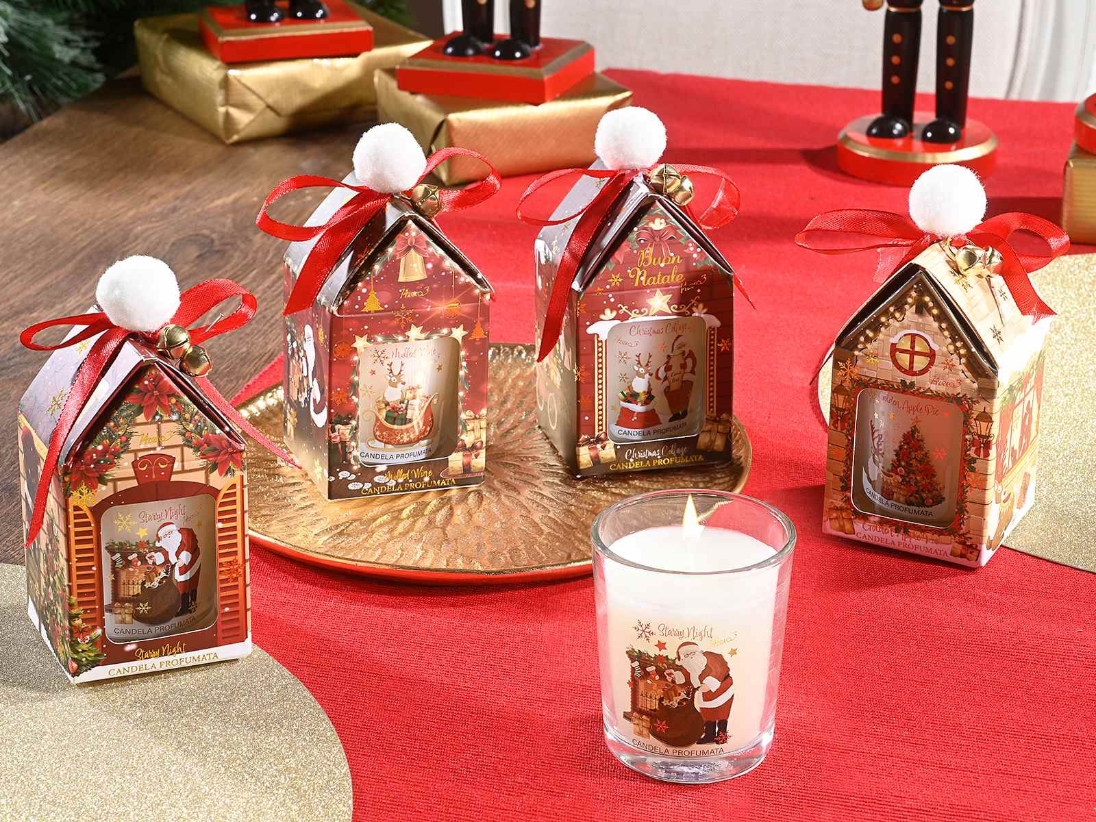 - Parfums disponibles : Nuit Étoilée, Vin chaud, Tarte aux pommes, Cottage de Noël